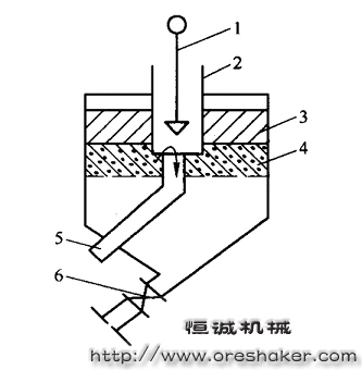 1-錐形閥;2-外套筒;3-輕礦層;4-重礦層;5-篩上精礦導管(內套筒); 6-篩下精礦閥門