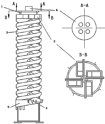 1-槽鋼機(jī)架; 2-給礦槽; 3-螺旋溜槽;