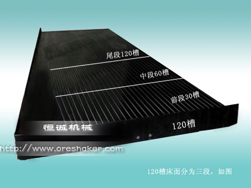 我廠主要生產的床面規格有:46槽搖床面(屬粗砂搖床面)、50槽搖床面(屬粗砂搖床面)、60槽搖床面(屬細砂搖床面)、88槽搖床面(屬細砂搖床面)、110槽搖床面(屬砂泥搖床面)、120槽搖床面(屬砂泥搖床面)、135槽搖床面(特細泥搖床面),單波搖床面、雙波搖床面(用于分選砂金),臺浮搖床面;材質分為:木刻槽、玻璃鋼、橡膠、漆灰刻槽(主要以玻璃鋼為主,原因如下:)。