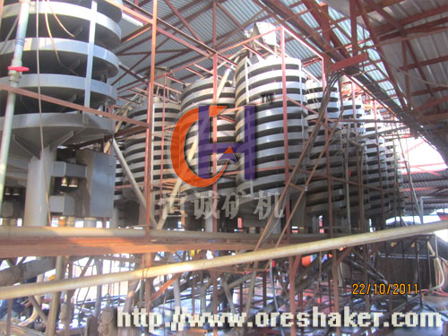 ↑↑↑螺旋溜槽組對鉻砂進行粗選↑↑↑