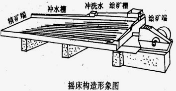 搖床選金是以搖床為主要設(shè)備的選金過程。 搖床是在水平介質(zhì)流中進(jìn)行選礦的設(shè)備,由床面和傳動(dòng)機(jī)構(gòu)兩部分組成(圖2),床面由傳動(dòng)機(jī)構(gòu)帶動(dòng)作縱向往復(fù)運(yùn)動(dòng)。礦古在 搖床上的分選是在床面往復(fù)運(yùn)動(dòng)過程中逐步完成的。促成礦粒運(yùn)動(dòng)的因素,除自身重力外,主要是沖流和床面差動(dòng)運(yùn)動(dòng)。礦粒在運(yùn)動(dòng)中經(jīng)受垂直于床面的分層作用和平行于床面的分離作用。兩項(xiàng)作用的結(jié)果是不同礦粒自床面的不同區(qū)間排出。