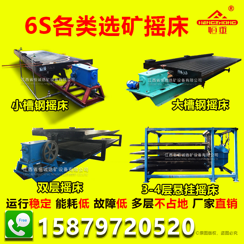 當層搖床已經有幾十年的發展歷程了,因為設備精選效果好,很受市場的青睞。而處理量小一直是它的心病,后來我司研發出來了雙層搖床,及懸掛式三層四層搖床。處理量一下子提升了不少,相信以后會有更好的產品從恒誠重工出來。